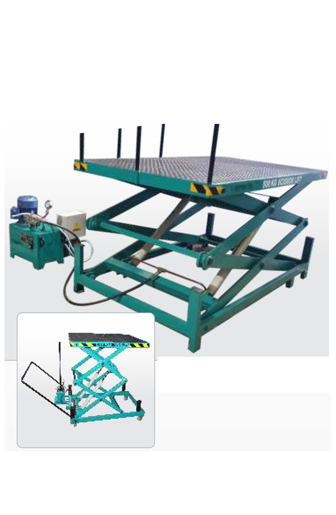- Our scissor lifts are custom built for heavy duty and high lifting purpose where capacity varies from 500 kg to 10 ton; lifting height 2 ft. to 15 ft.